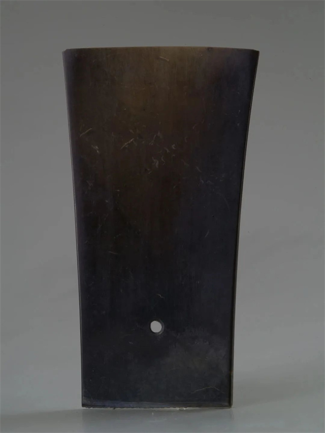 其中,展出的一件玉鉞材質(zhì)是深綠色透閃石玉,最薄處的厚度僅為0.7毫米,是國內(nèi)目前已知“最薄的史前玉鉞”,充分體現(xiàn)了石峁玉器高超的切割打磨工藝,目前專家對于該玉鉞的加工方式尚無定論。玉鉞出現(xiàn)于新石器時代至商周時期。這類形狀似兵器的玉器,一般稱之為“玉兵”。在此時期,玉兵主要作為一種禮器,是彰顯軍權(quán)的象征物品,而并非用于砍殺的實(shí)用器。在石峁城墻中常有玉刀、玉鉞、玉鏟等薄片帶刃玉器,這就是考古界所說的“藏玉于墻”,葉舒憲先生認(rèn)為這種現(xiàn)象正是“瑤臺玉門”的表現(xiàn)。