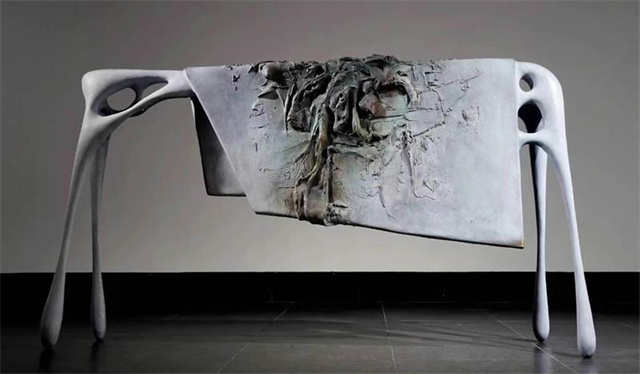 走進展廳,精美的藝術作品令人目不暇接,有造型獨特的椅子和沙發(fā)、抽象主義線條的藝術畫、各種充滿藝術氣息的白酒瓶,這些都和平常我們見到的不同,新穎別致,充滿藝術感。最令探班員印象深刻的是展廳中一套飯桌飯椅,獨具匠心、古樸厚重,用的卻是竹子這樣的環(huán)保材料。王曉宇介紹道:“這些兼具實用性的藝術品,充分體現(xiàn)了‘物感主義’藝術與生活的交融,真正做到了‘讓藝術回到生活現(xiàn)場’。”