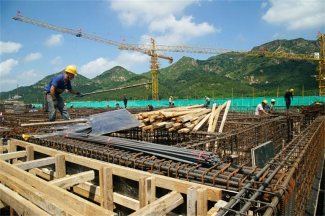工人們在緊張地施工中。